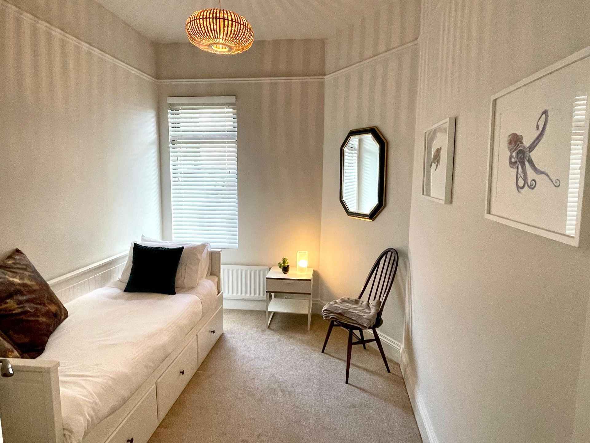 With 3 bedrooms, 1 double, 2 singles and 1 daybed this property can accommodate 5 guests in complete comfort.